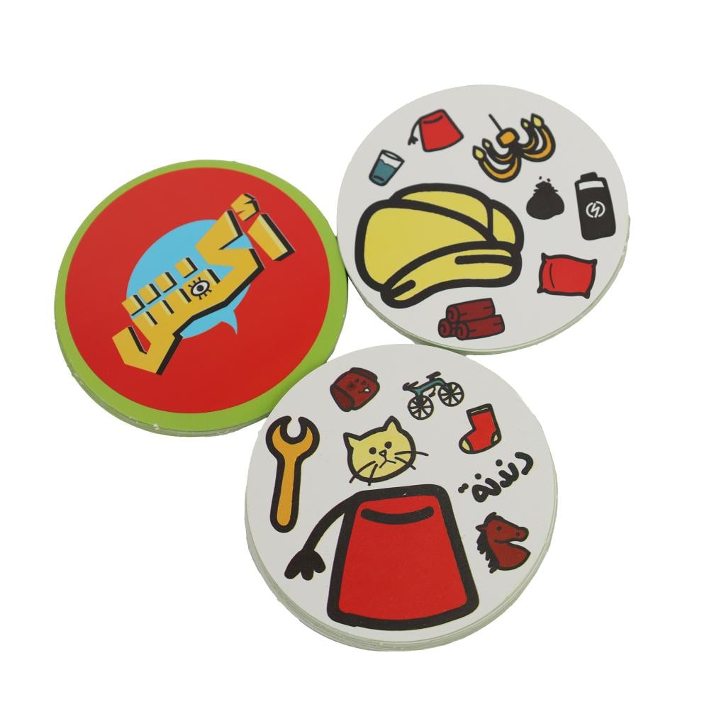 - يتم توزيع مجموعة من البطاقات على اللاعبين، وكل بطاقة تحتوي على عدة أشكال أو رموز مختلفة.